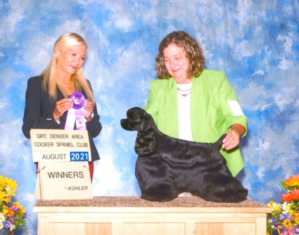 ^ GCH Mardi Gras Champagne On Ice, “Roxy”shown winning Best in Sweeps, WB, and BOH in show under judges Kathy Brock and Donna Jordan.