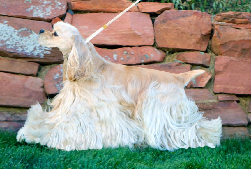 ^ From his first litter, Mardi Gras Good Golly Miss Molly earned her 1st major with a BOV from the puppy class, at 8 months of age, over a Group winning special at the Blackfoot KC shows >