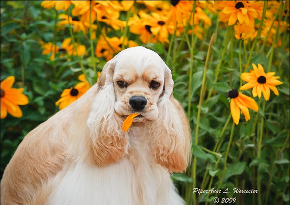 My breeding goals have always been to breed to the Cocker Spaniel breed standard, dogs that are intelligent, sound and live long happy lives. I was very fortunate to start with sound healthy foundation animals and I try to maintain that in my breeding program. Eyes are checked annually, OFA certification is obtained on all breeding stock, and great temperaments are a top priority.