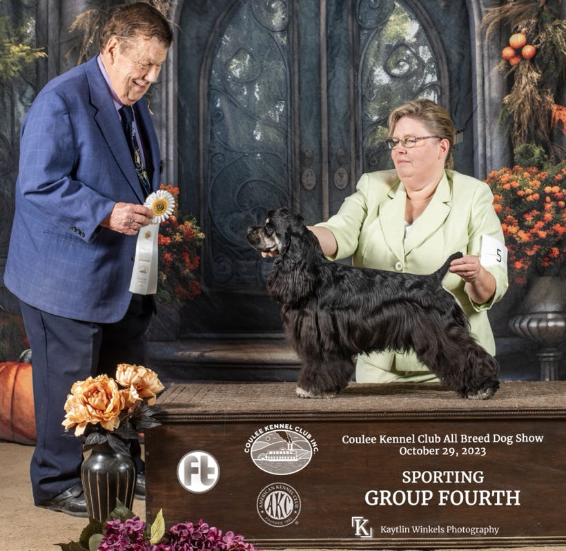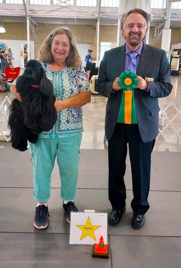 ^ GCH Mardi Gras Champagne On Ice, “Roxy”shown winning Best in Sweeps, WB, and BOH in show under judges Kathy Brock and Donna Jordan.